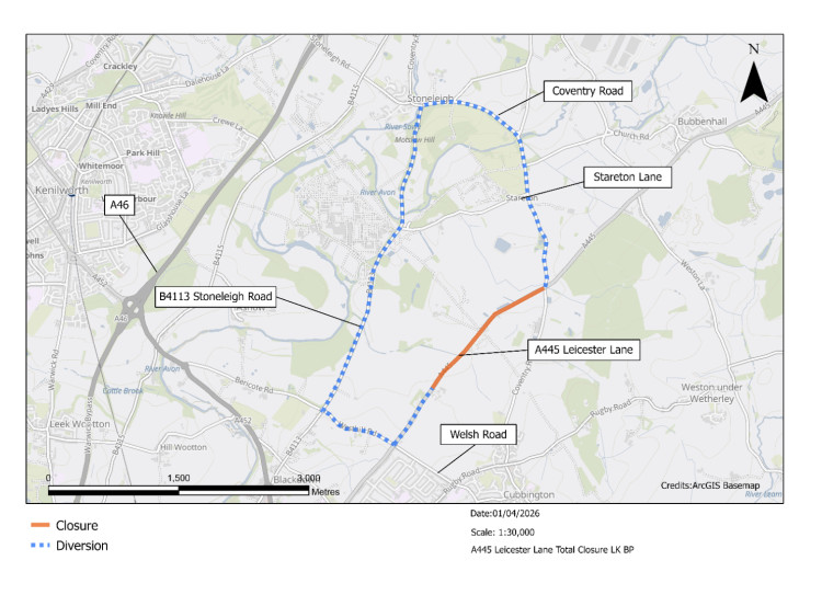 The works will take place on A445 Leicester Lane from Monday to 27 April to Friday 8 May